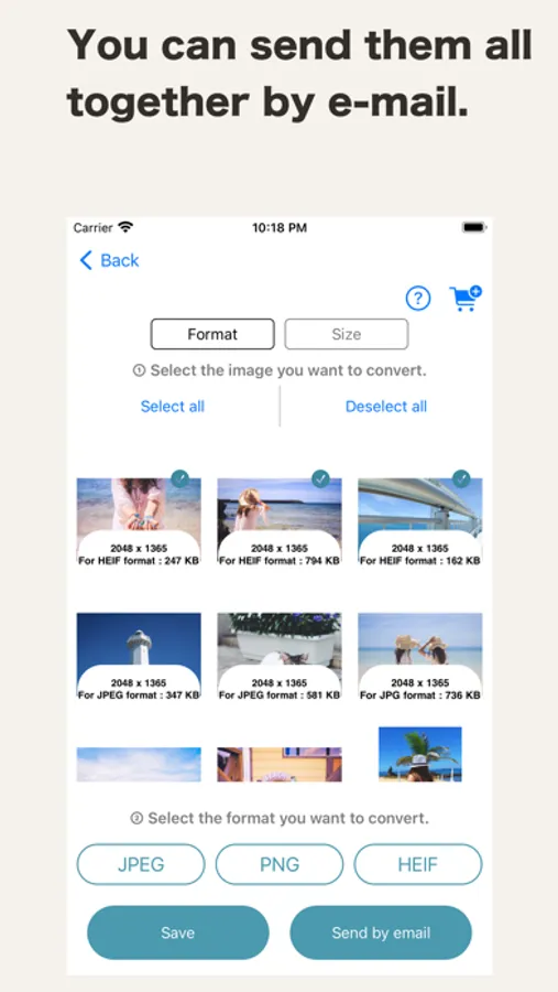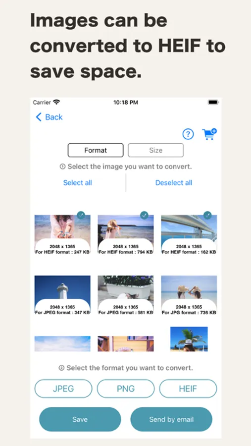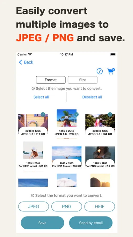 You can easily convert multiple images to JPEG, PNG, or HEIF all at once or individually.