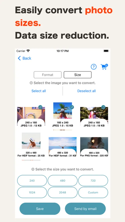 Alternatively, you can reduce the image size of JPEG or PNG images to HEIF(HEIC).