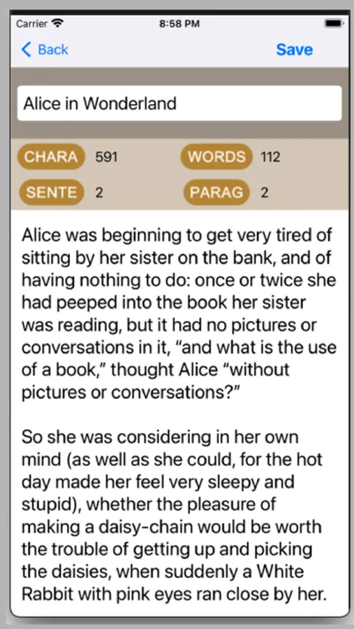 CW counter can count the number of characters, words, sentences and paragraphs.
