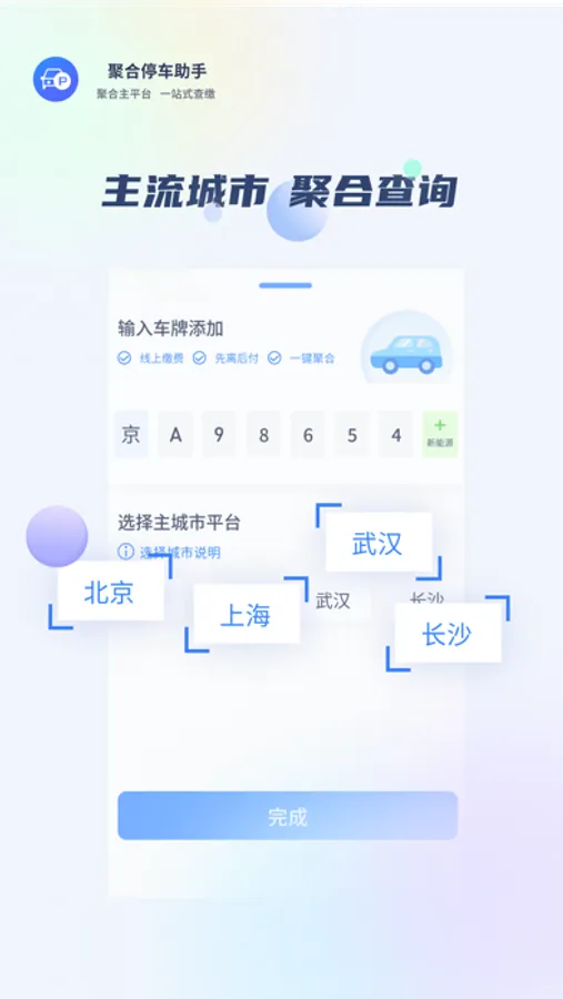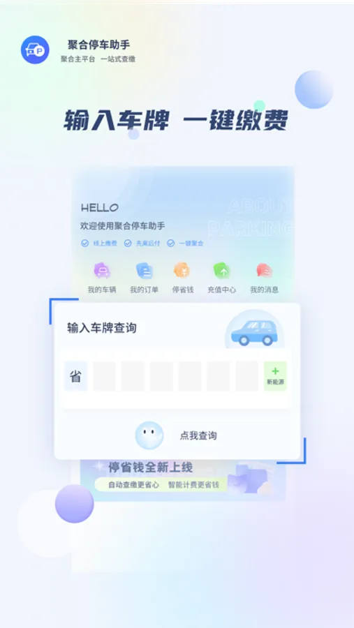 聚合停车助手创立于2018年,专注城市道路停车查询缴费,解决用户停车痛点,聚合主流平台,现已支持北京、上海、广州、长沙等10余家主要城市,30余家商业平台。
