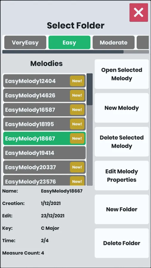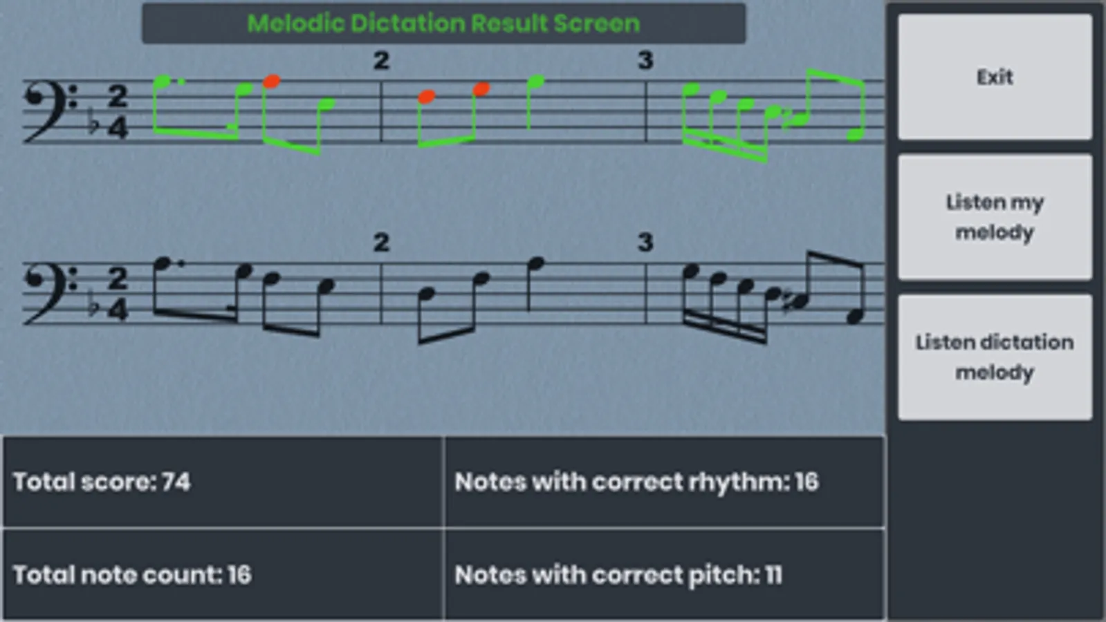 - Drill and practice musical dictation with real melodies. (147 built-in melodies in various levels)