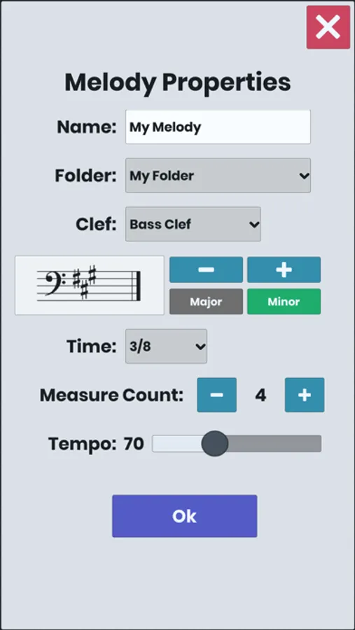 With this application you can compose, save, listen and share melodies with your friends. There are also various practice panels in the fields of aural training and theory within the application. Current available practice panels are listed below;