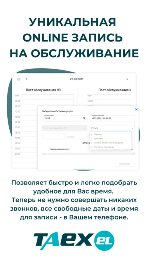 TAEXEL – это приложение, которое экономит твое время, деньги и нервы. Скачай TAEXEL прямо сейчас и почувствуй себя хозяином своего автомобиля! Твой личный автосервис всегда под рукой! Узнай, что такое настоящий контроль над своим авто! Сэкономленные деньги – на хобби и отдых, а не на внеплановый ремонт!