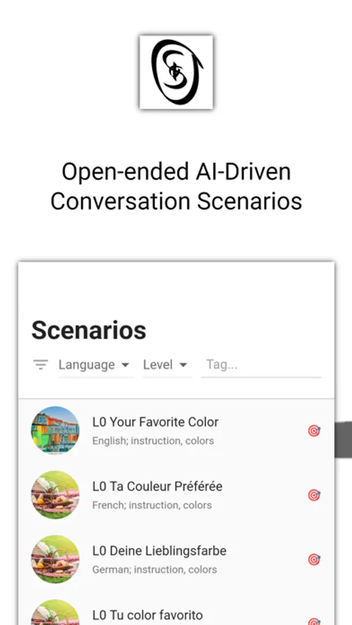 Osio provides Language Learning Scenarios for almost every real-world situation that you might find yourself in -- from talking about your favorite flavor of ice-cream, to reserving a hotel room, to discussing a business plan.