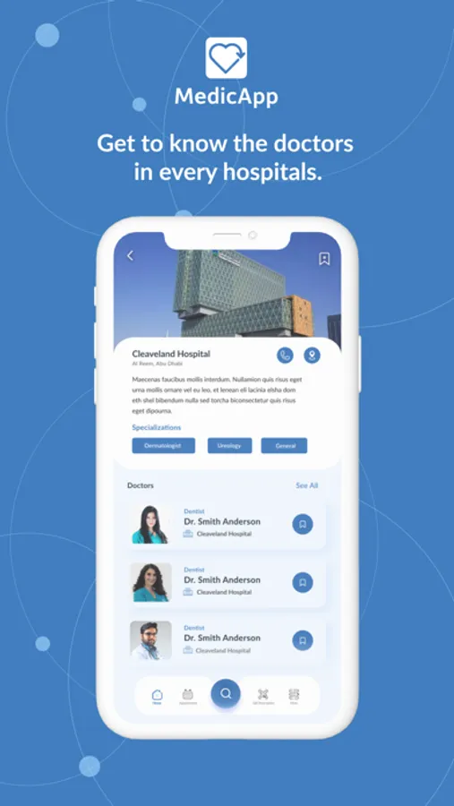 MedicApp is the UAE's leading private healthcare operator which helps you to find a multi-range of health clinics in Dubai, Abu Dhabi, and the whole UAE. MedicApp Find Clinics connects you with everything you need to take care of your health and your loved ones. With the MedicApp - Find Clinics available 24x7, you can find a clinic call them and make an appointment with your healthcare Medical doctors and manage all your appointment bookings at the touch of a button.