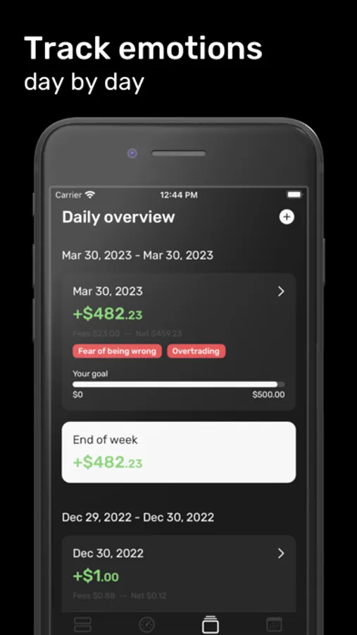 - Tags and notes: add custom tags to your entries and track your emotions to see what went well and what went wrong