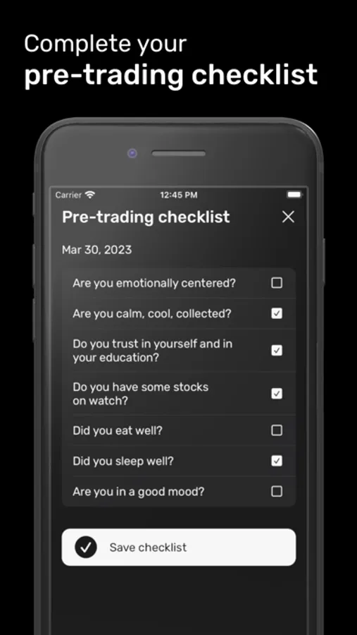 - Pre-trading checklist: being ready each morning is very important so we created a pre-trading checklist feature to help you with that