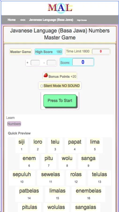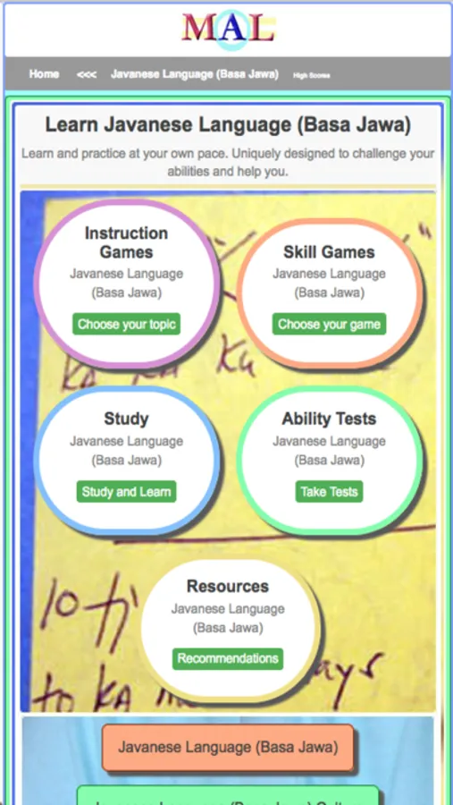 Play Javanese Learning Games, Take Javanese Tests, Study and Learn