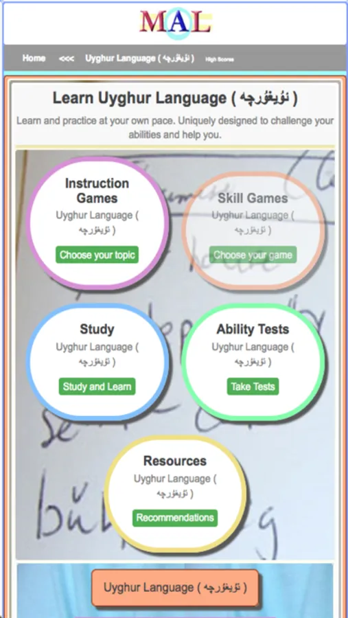 Play Uyghur Learning Games, Take Uyghur Tests, Study and Learn