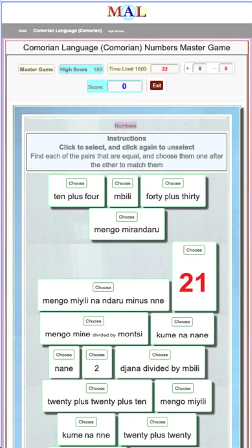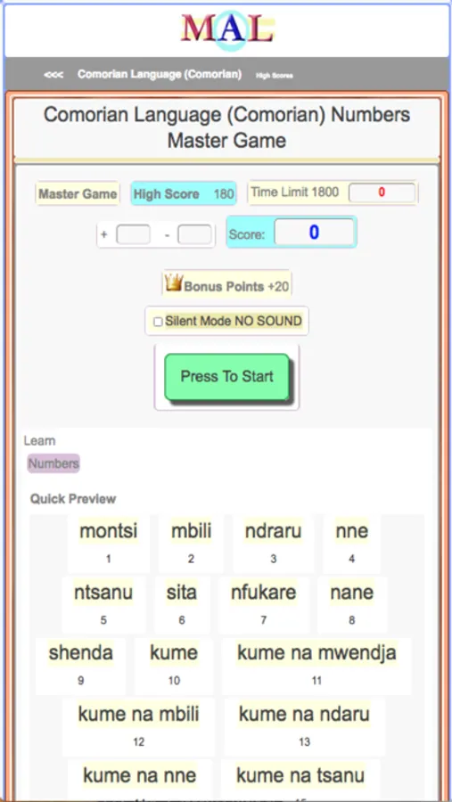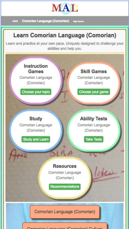 Play Comorian Learning Games, Take Comorian Tests, Study and Learn