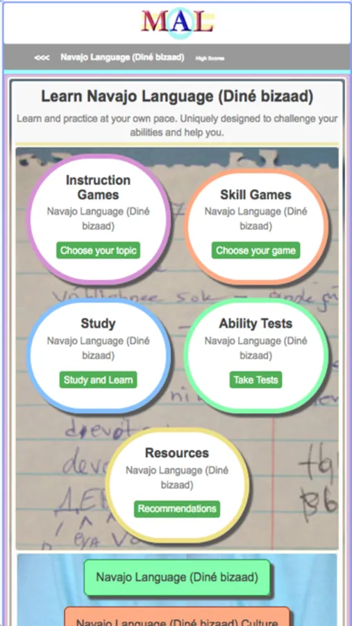 Play Navajo Learning Games, Take Navajo Tests, Study and Learn