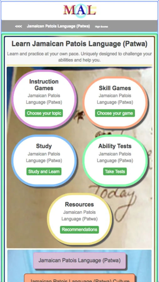 Play Jamaican Patois Learning Games, Take Jamaican Patois Tests, Study and Learn