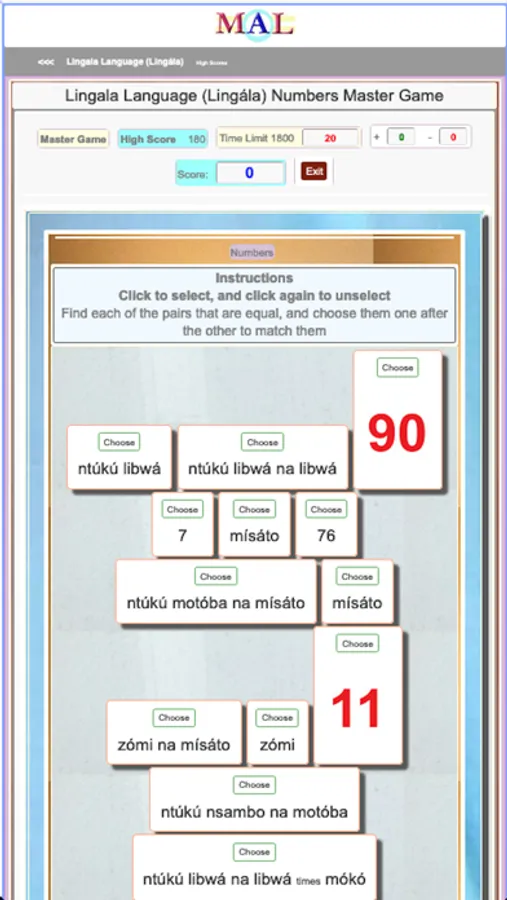 Play Lingala Learning Games, Take Lingala Tests, Study and Learn