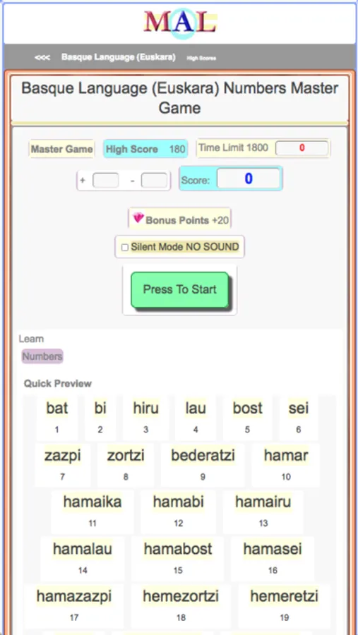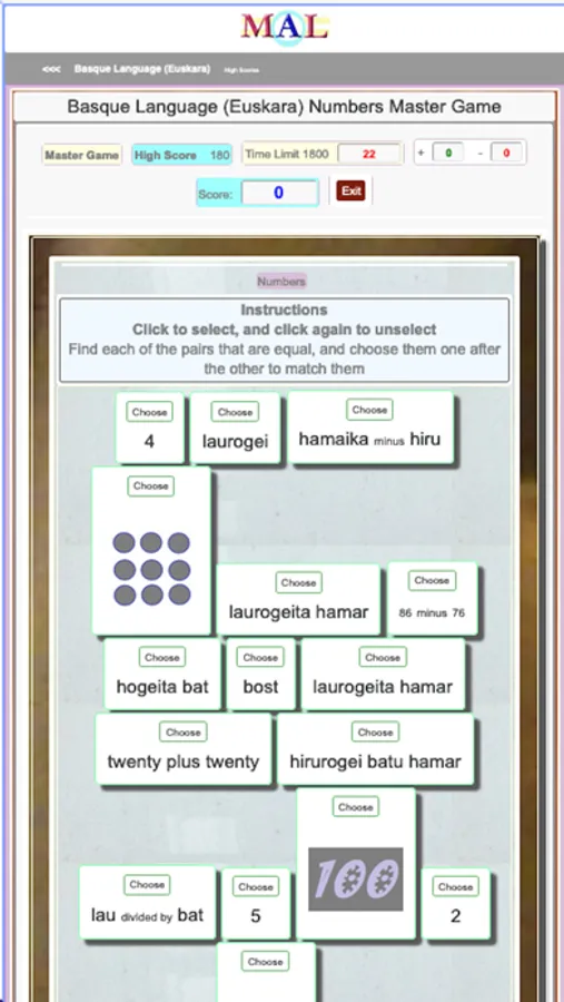 Play Basque Learning Games, Take Basque Tests, Study and Learn