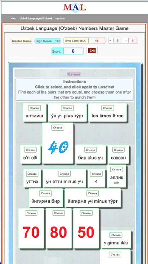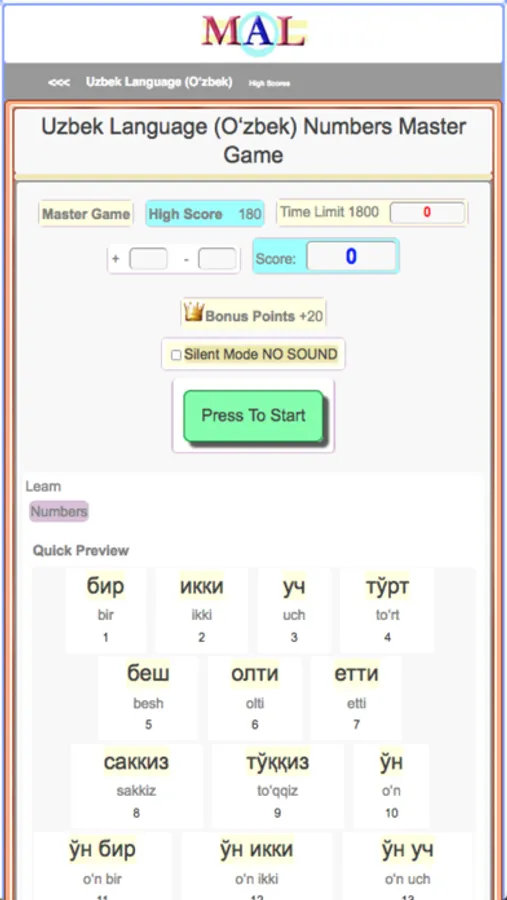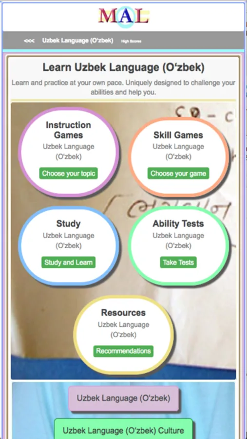 Play Uzbek Learning Games, Take Uzbek Tests, Study and Learn