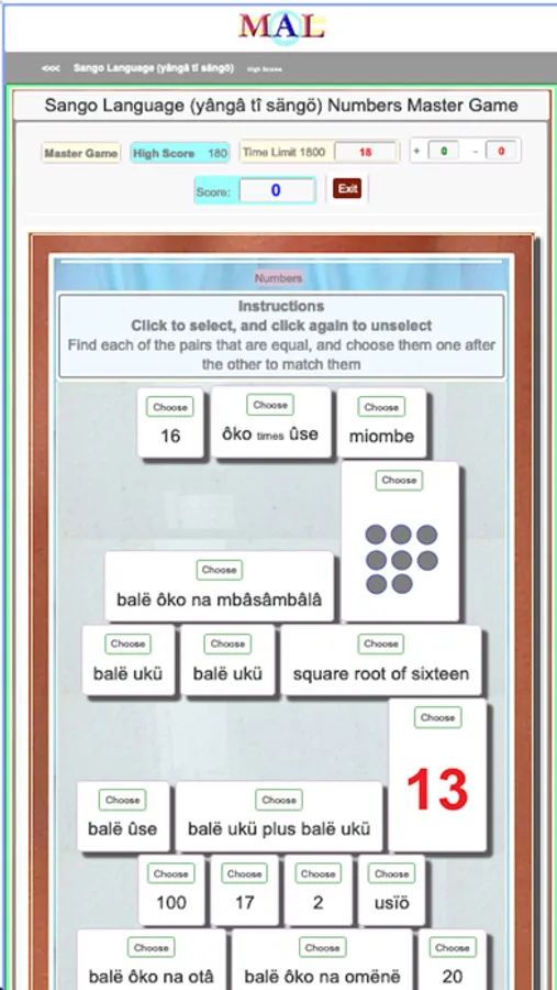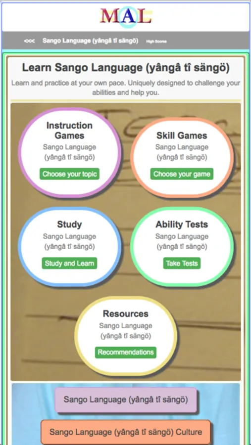 Play Sango Learning Games, Take Sango Tests, Study and Learn