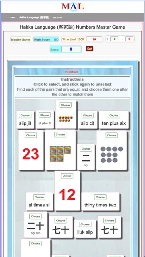 Play Hakka Learning Games, Take Hakka Tests, Study and Learn
