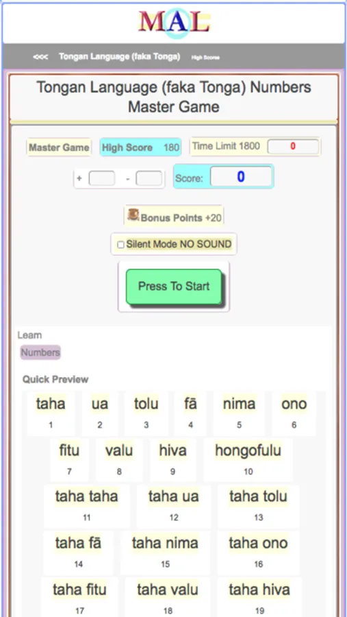 Play Tongan Learning Games, Take Tongan Tests, Study and Learn