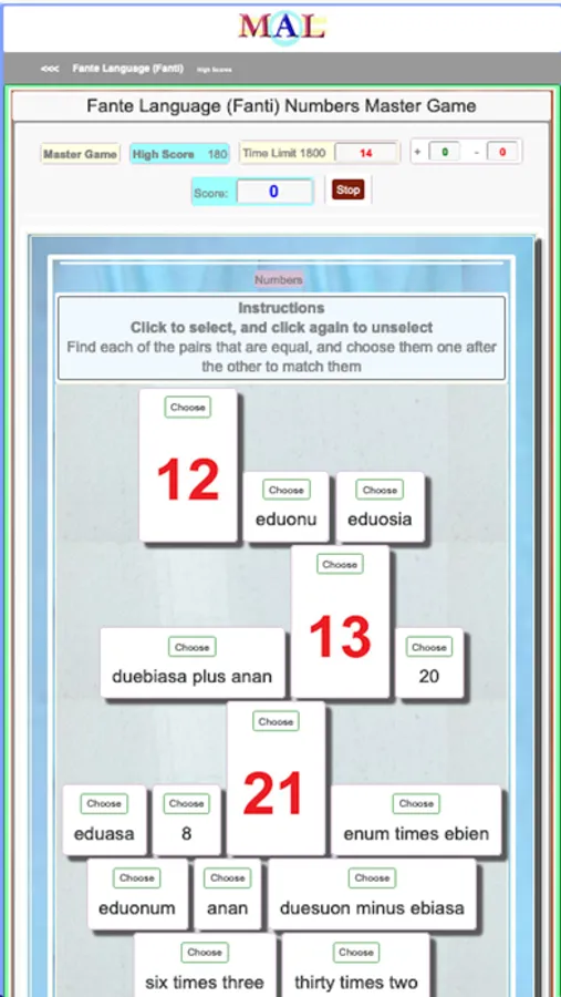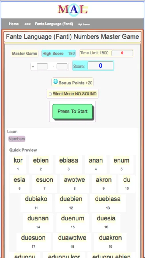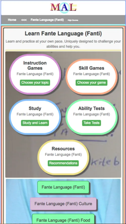 Play Fante Learning Games, Take Fante Tests, Study and Learn