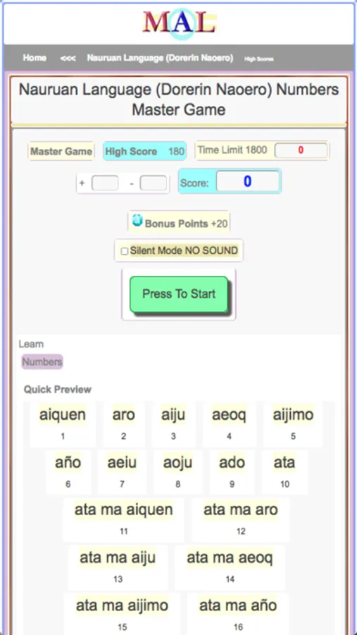 Play Nauruan Learning Games, Take Nauruan Tests, Study and Learn