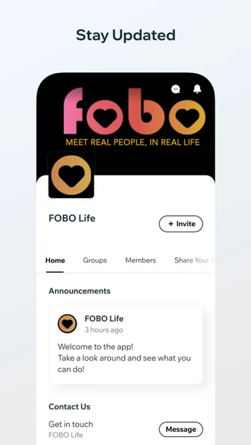 FOBO is the first app to create Singles Community Groups. No Swiping, No match the chat, No upgrade to see your matches, females message first, or any of those other old, tired, gimmicky, and outdated ways of connecting with singles near you.