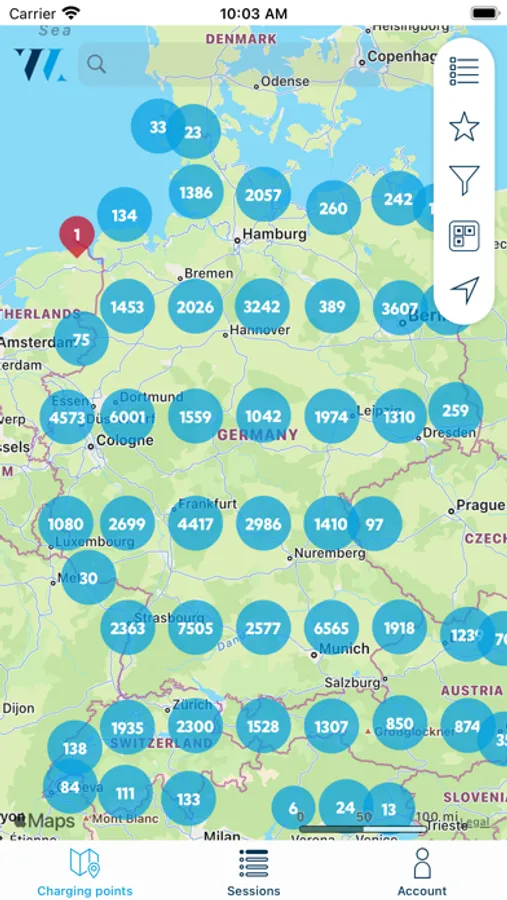 **Filtern, suchen und finden Sie tausende Ladepunkte in ganz Europa.