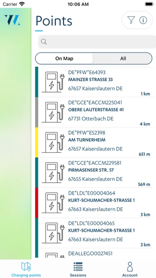 **Echtzeitinformationen über den Belegstatus, Steckertyp, Tarif, die Öffnungszeiten und Ladegeschwindigkeit