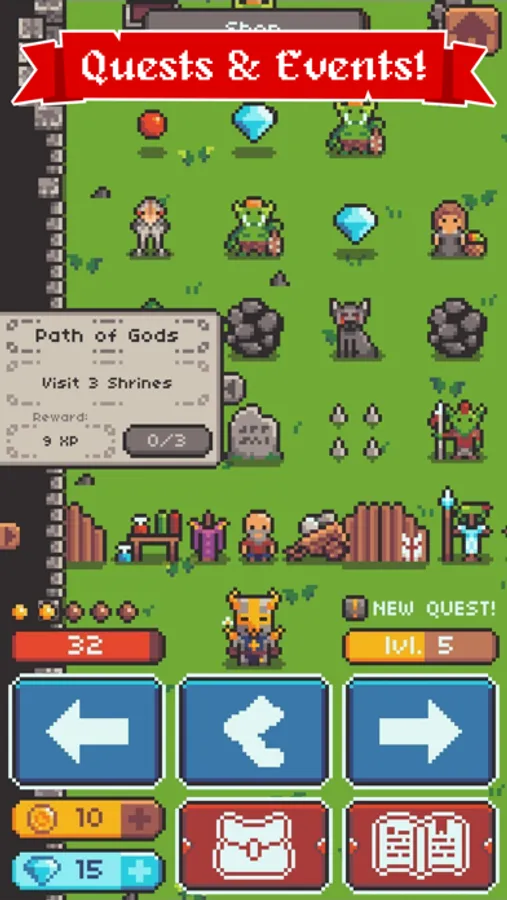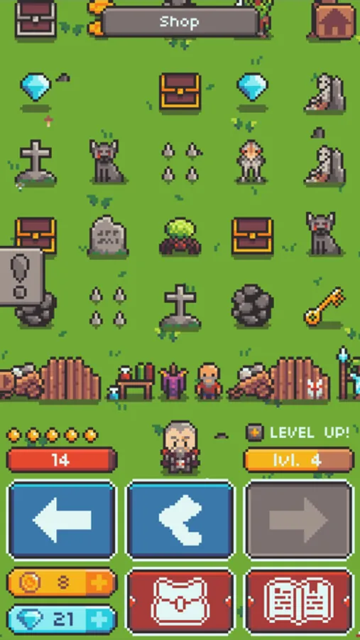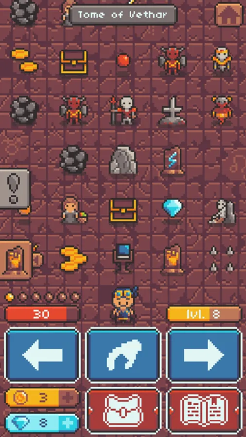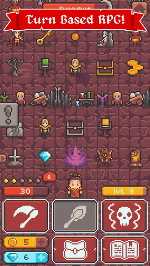 Explore a free, turn-based RPG with a different world procedurally generated every time you play. Select from nine mighty heroes with unique abilities and explore a grid based world with tons of loot, monsters, and interesting encounters. You can unlock new heroes, items, and skins with the in-game currency, Diamonds. Start your adventure in the realm of Eternis, choose your difficulty, pick your hero and fight your way through three different acts. Develop your own strategy and chart your own path in order to defeat Astaroth, the Lord of Hell, and be immortalized in the Hall of Fame!