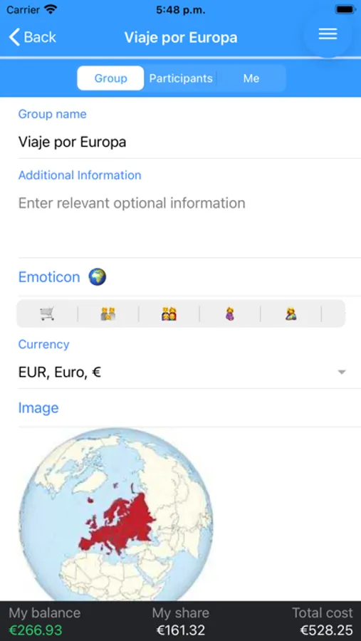 Groups must have a default currency. This currency is the one with which the balances will be squared. By default, the currency of your country will be assigned, although this can be changed later.