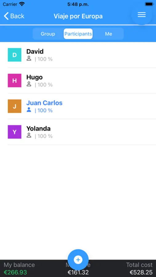 Share the groups with the participants, so that they have access to it, can identify themselves and make their own annotations of expenses. Don't carry all the work yourself!
