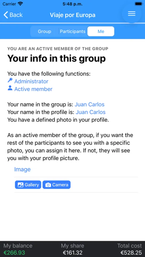 To facilitate the use of the application and make it easier to handle, you will be able to associate images in different areas of the application: user profile, group of expenses and notes.
