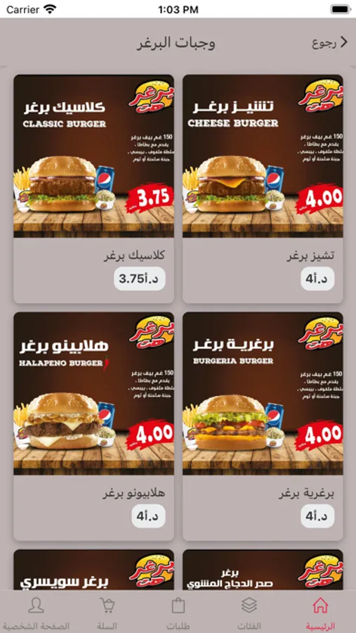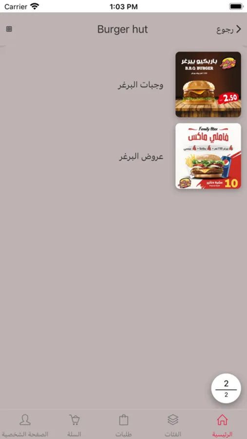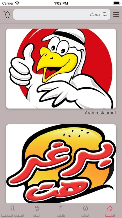 تطبيق يحتوي على مجموعة مطاعم لشركة العون