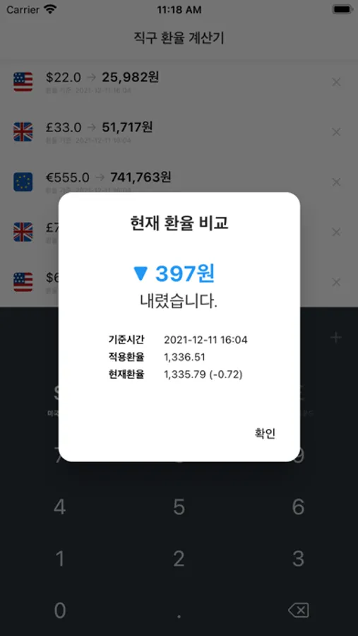 해외직구시 해당 금액이 얼마나 될지 실시간 환율료 계산을 해줍니다.