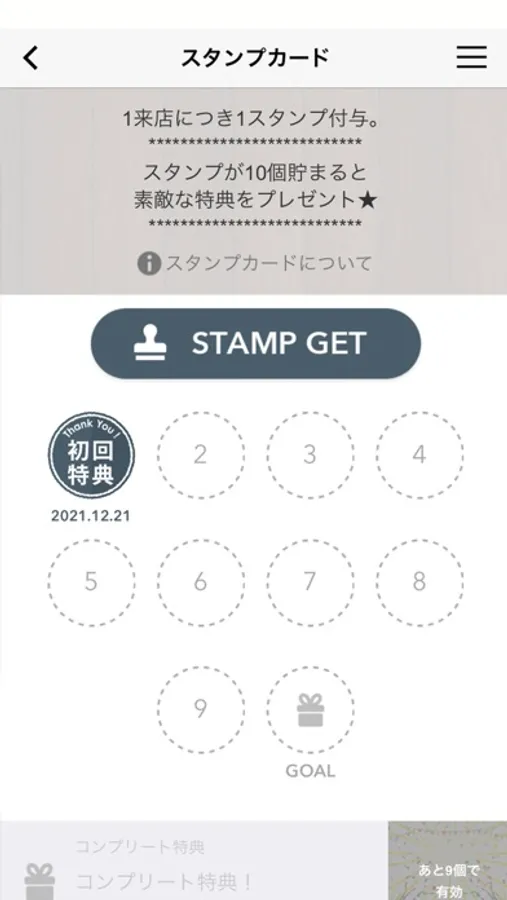 たくさん貯めていただくと次回使える特典をご用意しております。