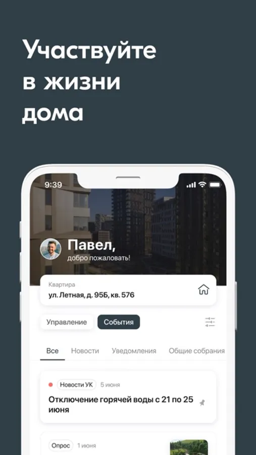 Отправлять заявки, оплачивать счета, принимать участие в опросах и общих собраниях, получать важные уведомления — теперь удобней.