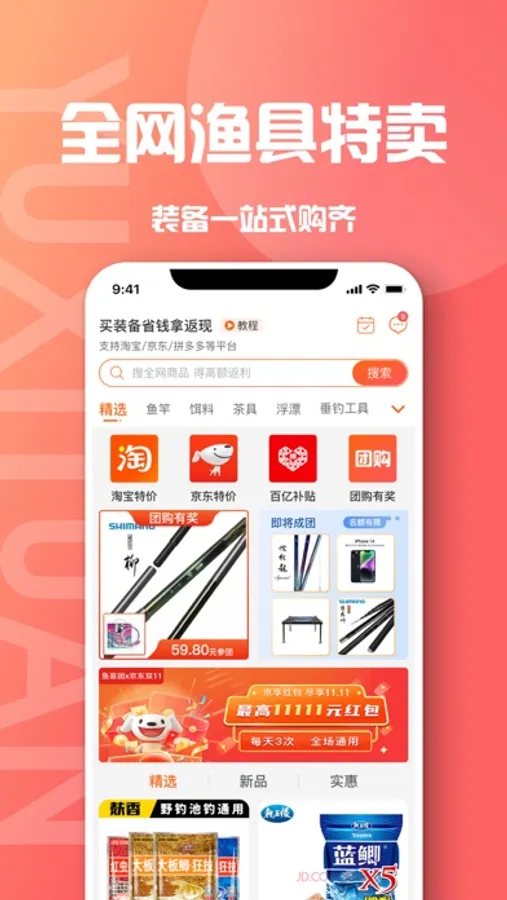 鱼喜团是专业的全网渔具装备省钱平台,聚合了淘宝天猫京东拼多多等电商平台的全部特价渔具和户外特价商品。