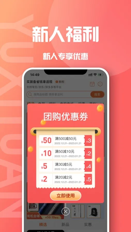 专属新人的特卖活动,可低价甚至0元得到正品好货。