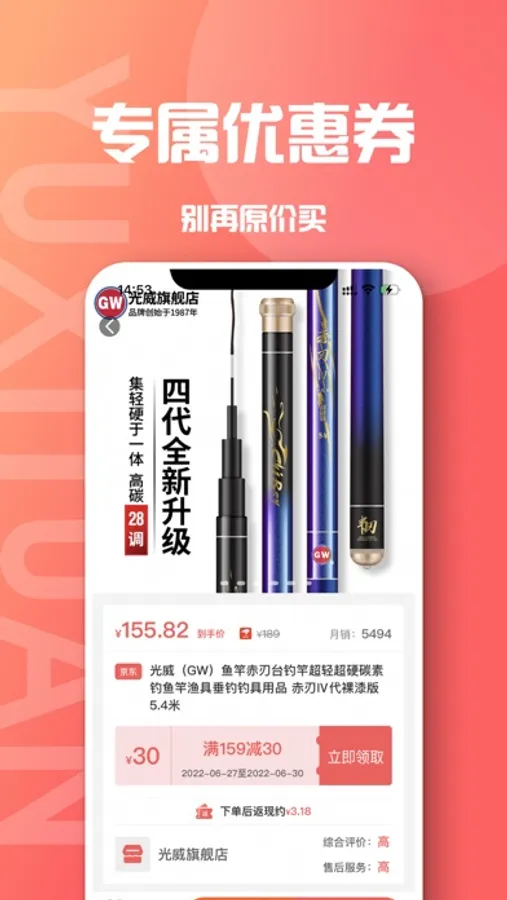 买前领隐藏优惠券,买完还可拿高额返利,一经推出深受全国广大钓友的喜爱和好评。