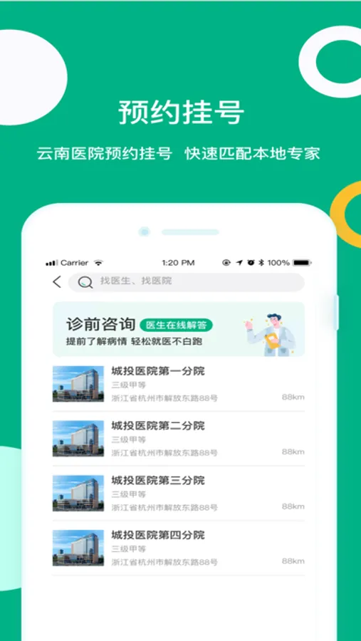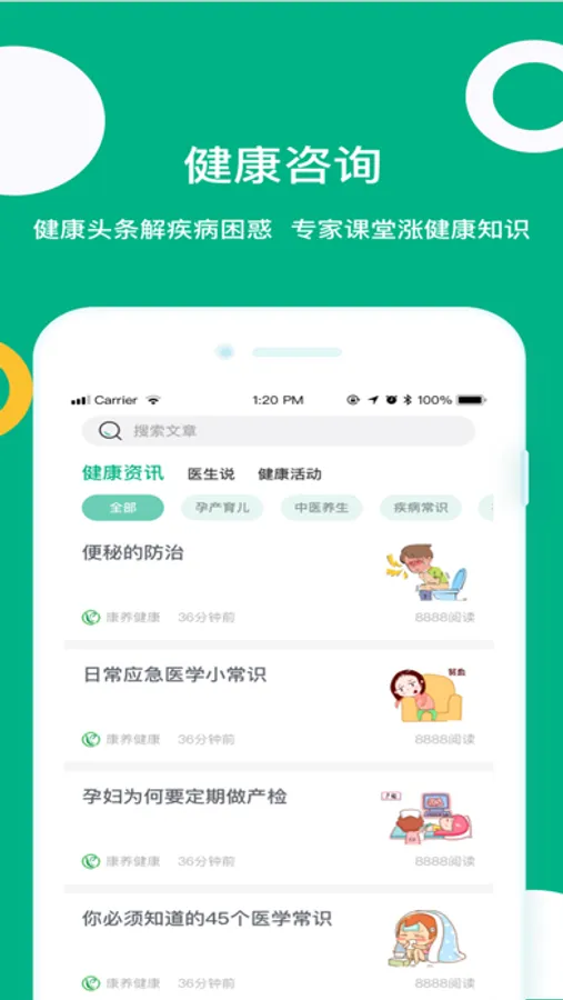 “康养健康”完全打通院内院外、线上线下,为患者解决病痛。构建完整的医疗行为场景,提供全流程、多渠道,简洁明了的院内、院外,线上、线下医疗服务。以达到足不出户即可享受在线咨询、问诊、续方、付费、药品配送到家等方便群众,整合资源,快捷安全的医疗智慧服务。