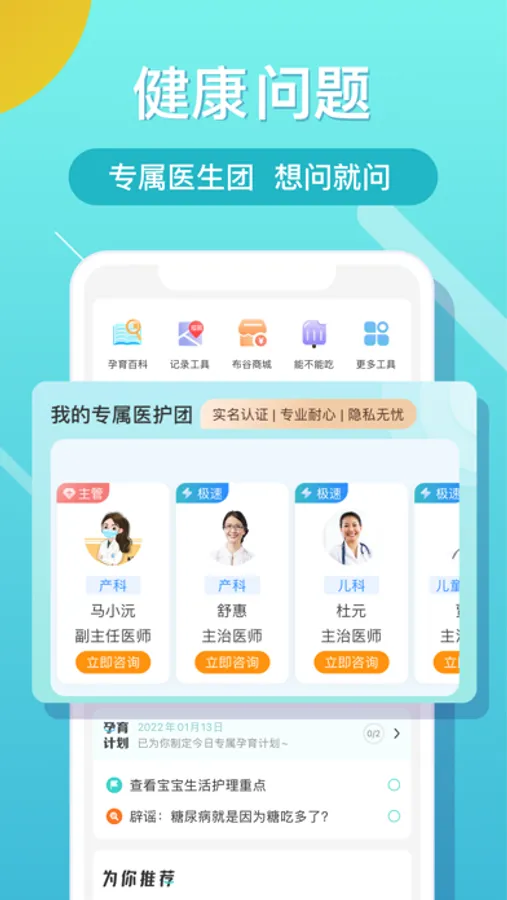 在布谷,不仅可以获得专属医生的问答服务,还可以获取丰富的孕育知识、实用的孕育测评工具以及精心挑选的母婴好物。