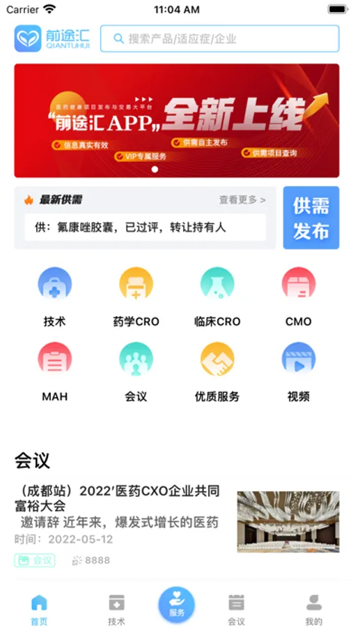 前途汇APP是医药健康项目供需信息发布和对接的大平台。有项目供/需发布、技术、药学CRO、临床CRO、COM、MAH和会议等特色业务专区,每个专区都可以发布和查询项目,供需项目实时上传、海量信息高效共享、平台专业优质服务。医药好项目,尽在前途汇!