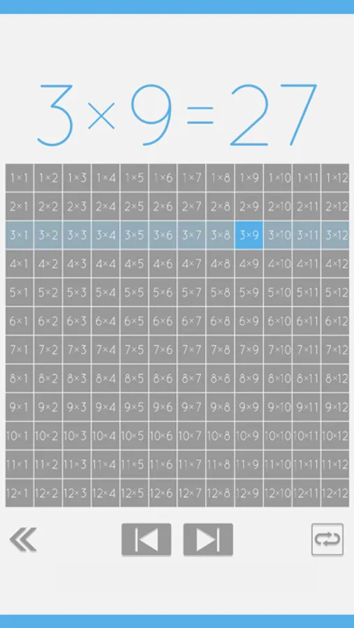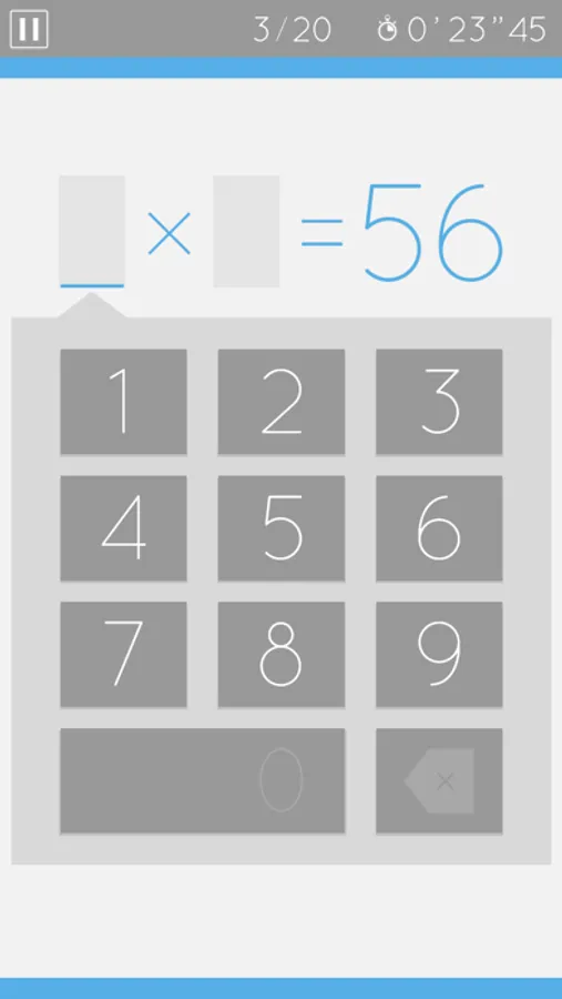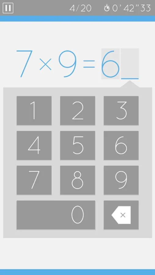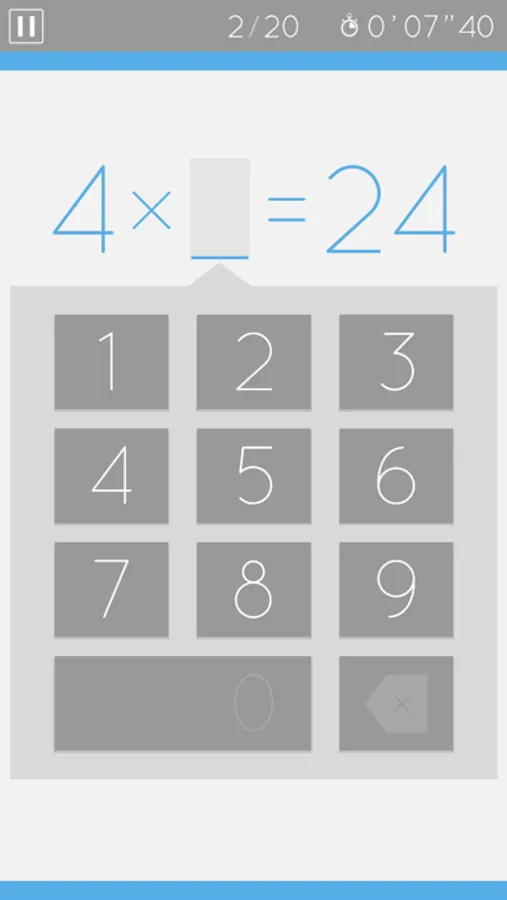 In addition to questions like "2×3=?", There are also questions such as "2×?=6" and "?×?=6", so you can train flexibly.