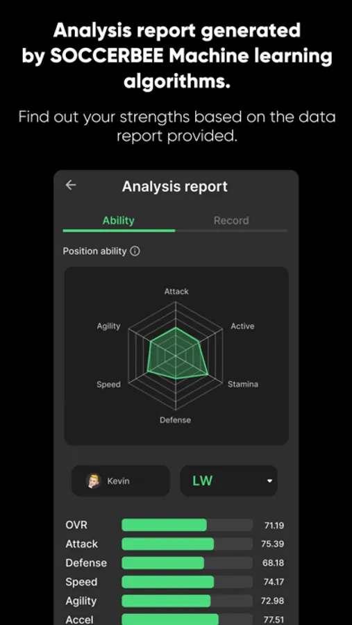 - Check your improvement with analysis and trend graphs generated by SOCCERBEE machine learning algorithms!