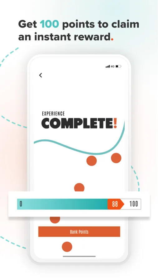 • Gain points for completing activities either by a quiz, location check-in, photo, purchasing an item, or donating to a charity.