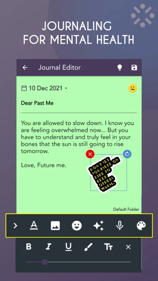 Ease app is the best mental health app designed to help you practice positive thinking, positive self talk, self-care, reduce stress and anxiety, quit addiction, and to stay highly motivated with daily positive reminders. Our guided journal is designed to help you track your moods, reconnect with yourself, lower stress levels, feel calmer, happier, more self-aware and improve your whole mental being.