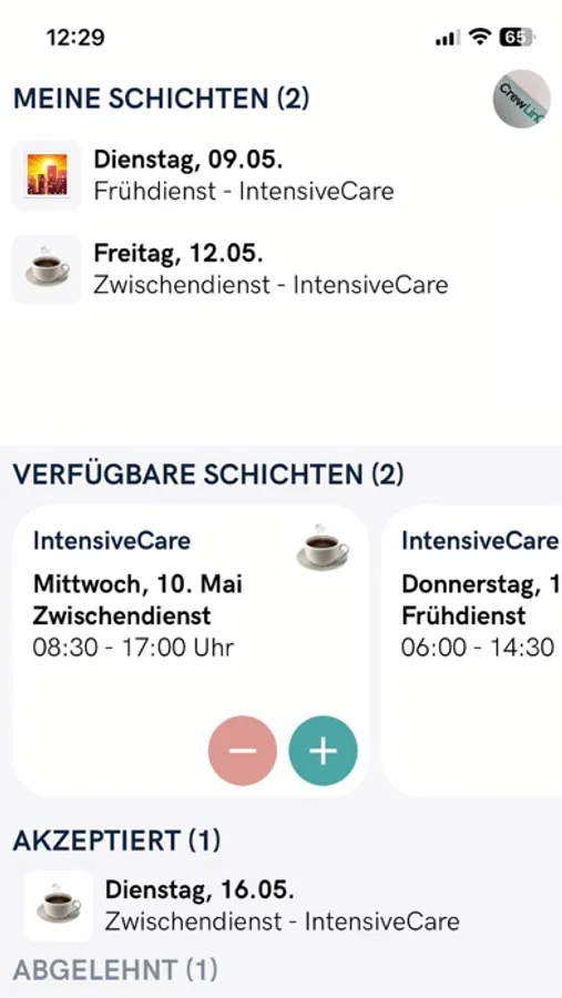 CrewLinQ ist für mehr Planungssicherheit in Schichtplänen, weil unvorhergesehene Lücken im Schichtplan durch In-Time-Suche nach Mitarbeiterinnen und Mitarbeitern des eigenen Hauses sowie der umliegenden Verbundshäuser gedeckt werden können. Somit wird der administrative sowie kommunikative Aufwand stark reduziert und viel Zeit gespart.