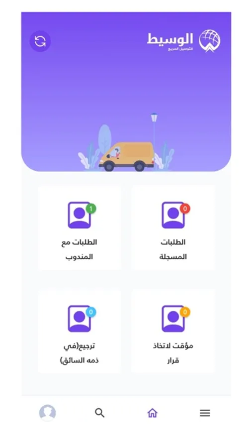 تطبيق مندوب التوصيل لشركة الوسيط للتوصيل السريع.
