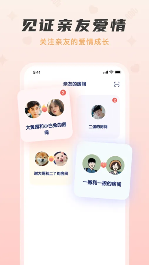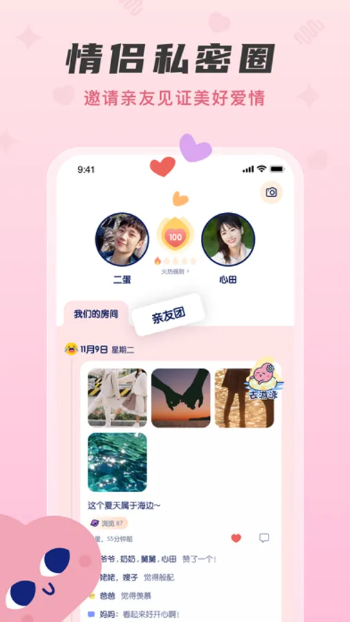 - 设立情侣亲友圈,互相见证爱情