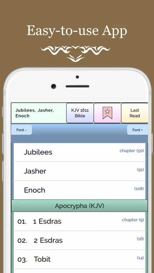 The books of Enoch, Jubilees, Jasher, Apocrypha, and King James Bible (KJV 1611), all in one app.