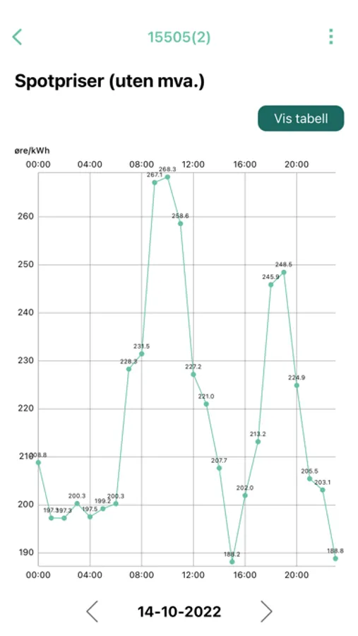 - Se din strømkostnad, pr måned, dag og time.